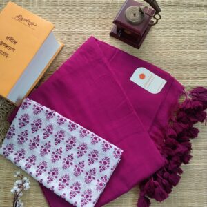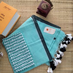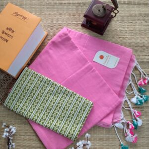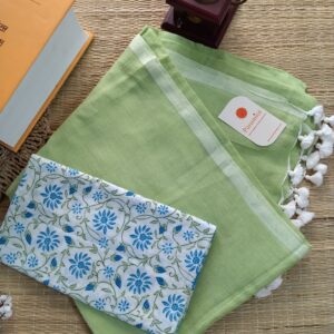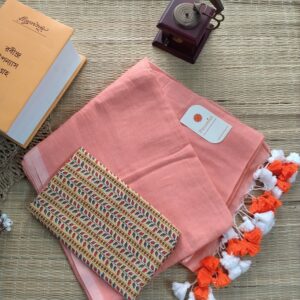 Mulmul Handloom Cotton Saree with Contrast Blouse
